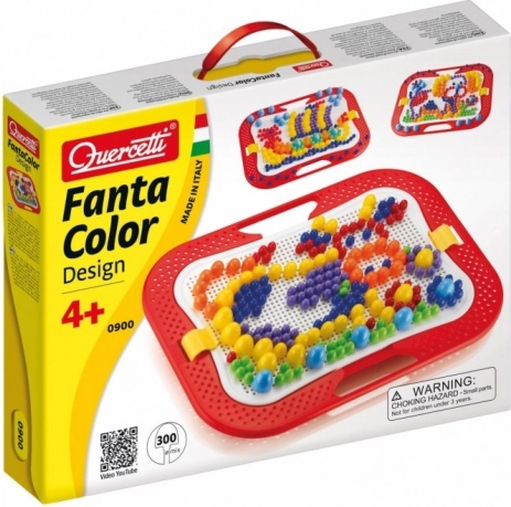 Mozaika QUERCETTI FantaColor Design je chytrá a zábavná tvořivá hra, která děti přirozeně vede k trpělivosti a soustředění. Díky perforované desce v pevném rámu s oblými hranami a praktickým rukojetím je manipulace snadná a bezpečná – ideální na doma i na cesty.