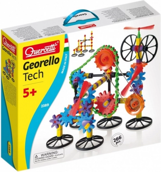 Stavebnice Georello Tech přenáší rotační pohyb mezi vzdálenými převody a názorně ukazuje základní mechanické funkce podobné těm, které najdete v reálných strojích. Díky řetězu a elastickému řemínku děti propojí ozubená kola na delší vzdálenosti a vytvoří ještě složitější konstrukce.