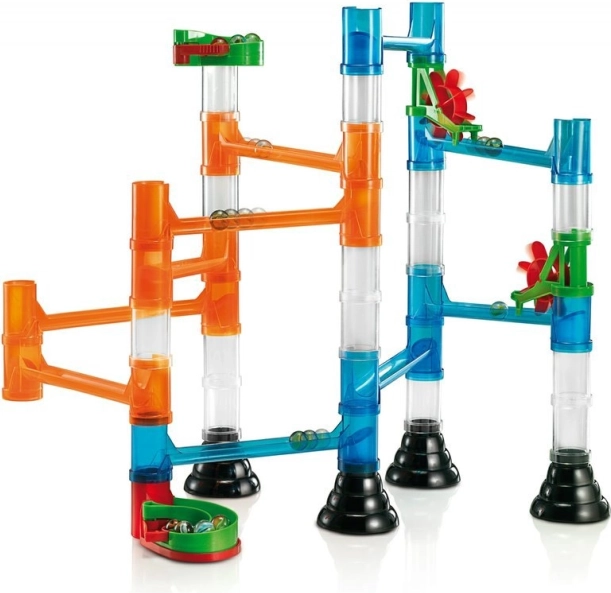 Stavebnice podporuje logické myšlení dětí a jejich schopnost plánovat každou stavbu do detailu tak, aby kuličky projely dráhou bez problémů.