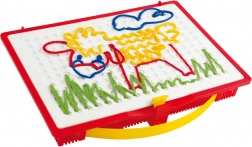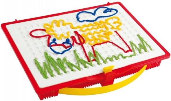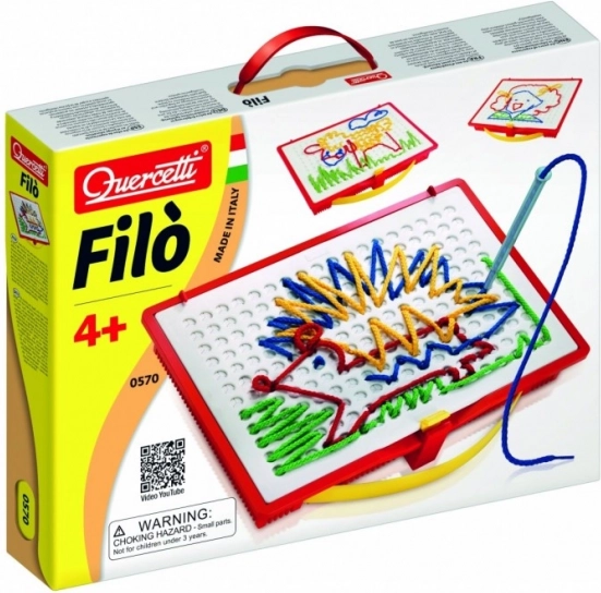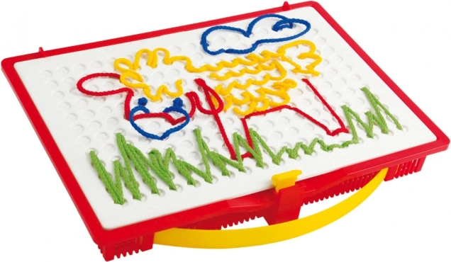 Objevte kouzlo kreativní hry s vyšívací soupravou Quercetti Filò, která podporuje dětskou fantazii a jemnou motoriku. Pomocí speciálních per mohou děti vytvářet různé obrázky zasouváním barevných šňůrek do otvorů na hrací desce, což jim přináší radost a zábavu.