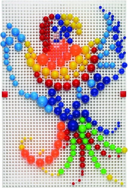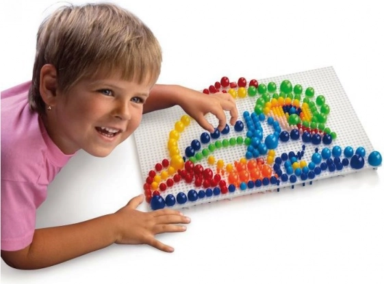 Obsahuje 300 kolíčků v sedmi barevných odstínech, které umožňují tvořit atraktivní mozaiky.