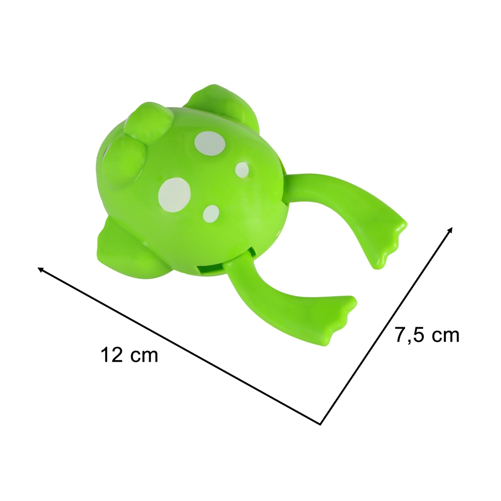 Šplouchající žába zabaví vaše dítě při koupání ve vodě. Můžete uspořádat soutěž mezi několika žábami a sledovat, která žába dorazí do cíle jako první. Rozkošná žabka, se kterou bude každá koupel spíše fantastickou zábavou než nepříjemnou povinností. Ideální hračka pro děti, které se rády cákají ve vaně, i pro ty, které to nemají rády. Nejsou potřeba žádné baterie. Jednoduchým otočením jej uvedete do pohybu.