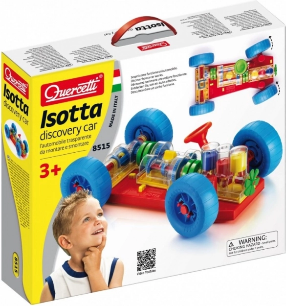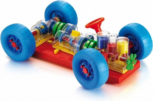 Důmyslná hračka, která přímo vybízí děti i jejich rodiče k zjištění, jak takové opravdové auto funguje. Všechny základní mechanické funkce jsou zde přesně reprodukovány. U motoru děti uvidí, jak pracují válce a kliková hřídel a jak jsou spojeny s převodovkou, která má funkční řazení o 3 polohách (neutrál, 1. a 2. stupeň). Diferenciál přenáší pohyb na zadní kola a umožňuje jejich otáčení nezávisle na sobě. Všechny mechanické části lze snadno připojit k podvozku a stejně tak je lze uvolnit speciálními odpruženými žlutými tlačítky. Volant funguje a umožňuje autu zatáčet nebo zajíždět do parkoviště. Děti mohou auto rovněž vpředu a vzadu zvednout pomocí speciálních vozíčků a otáčením kliky u předního z nich uvádět celý mechanismus do pohybu. Při řazení jednotlivých rychlostních stupňů uvidí, jak se bude měnit rychlost pohybu kol a válců. Při zařazení neutrálu si rovněž všimnou, jak se motor a diferenciál navzájem odpojí. Určeno dětem od 3 let. Hlavní vlastnosti: základní mechanické funkce jsou reprodukoványfunkční volant a mechanické částipro děti od 3 let