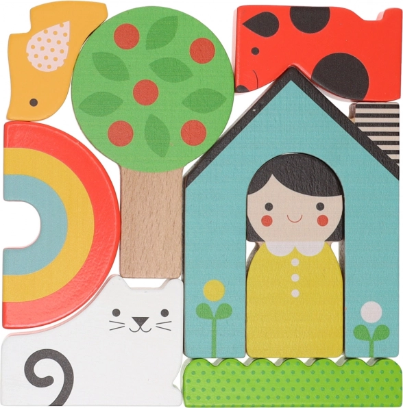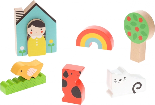 Tento barevný set umožňuje dětem tvořit domácí scény nebo stavět jako hlavolam. Dílky jsou navrženy tak, aby dobře padly do dětských rukou a byly vyrobeny ze 100% FSC® dřeva, které zaručuje šetrnost k přírodě.