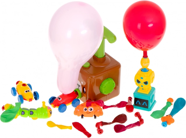 Tato interaktivní sada využívá vzduch z balonku k pohonu autíček a dalších komponentů. Děti si nasadí balonek, několika stisky pumpičky jej nafouknou a stisknutím tlačítka sledují, jak autíčko sviští vpřed. Hra je bezpečná, intuitivní a podporuje logické myšlení, koordinaci oko–ruka i zvídavost.