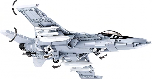 Model stíhačky s propracovaným kokpitem, podvěsnými raketami a výraznými motory poskytuje atraktivní vzhled pro hraní i vystavení.