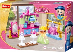 Stavebnice Sluban Dobový obchod s oblečením představuje skvělou zábavu pro děti díky jednoduchosti a možnosti tvořit vlastní herní scénáře. Set obsahuje 103 dílků a jednu figurku, což umožní zrealizovat různé módní scénky v obchodě.