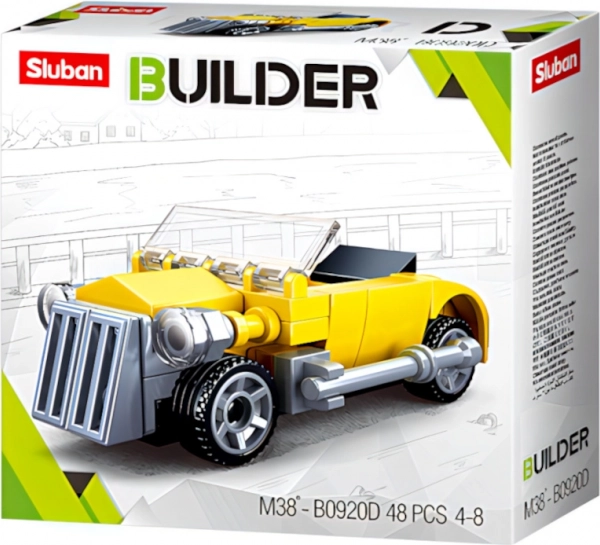 Objevte svět barevných a kreativitou naplněných stavebnic s Sluban Builder Žlutý kabriolet. Tato stavebnice je ideální pro děti od 4 let, s jednoduchou obtížností a 48 dílky:
