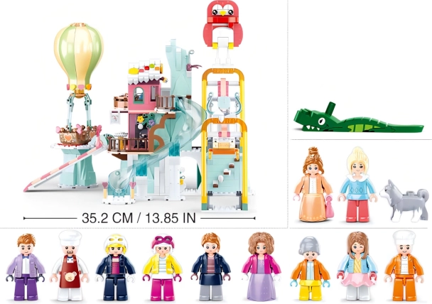 Díky kompatibilitě s oblíbenými stavebnicemi snadno rozšíříte svět fantazie o další sety. Interaktivní prvky, včetně horkovzdušného balónu a lanovky, inspirují k tvořivému stavění i role-play scénářům.