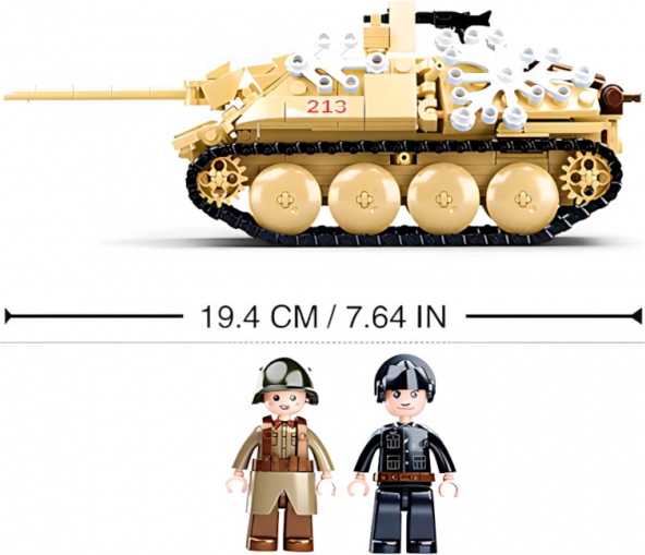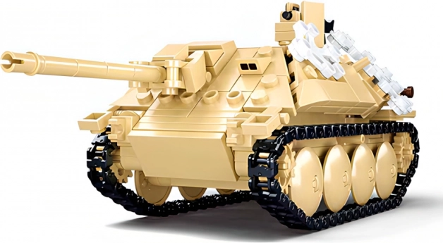Vytvořte si atmosféru zimního bojiště s realistickým modelem stíhače tanků od značky Sluban. Stavebnice kombinuje pevnou konstrukci, otočnou věž a pohyblivé pásy, takže je ideální pro kreativní stavění i akční hraní. Dvě detailní figurky s otočnými a výkyvnými částmi těl oživí každou scénu.