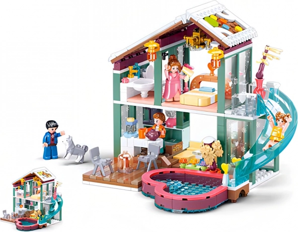 Postavte si útulnou zimní chatu a užijte si nekonečné zimní příběhy. Dvoupatrový domek s ložnicí, obývacím prostorem a venkovními prvky jako je skluzavka či vířivka podněcuje dětskou fantazii a společnou hru. Součástí jsou 4 detailní figurky s otočnými a výkyvnými částmi pro ještě realističtější scény.