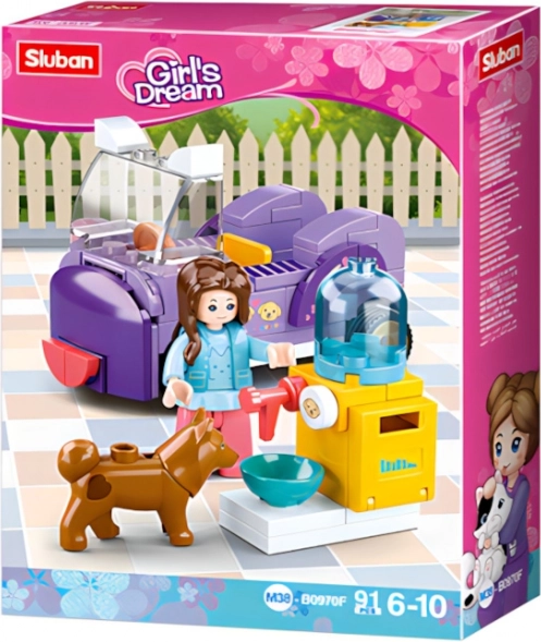 Postavte si stylové autíčko a krmítko pro pejsky a vyrazte za dobrodružstvím! Stavebnice Sluban Girls Dream podporuje kreativitu, jemnou motoriku a představivost. Díky inovativním minifigurkám s otáčivými a výkyvnými částmi je hraní ještě realističtější.