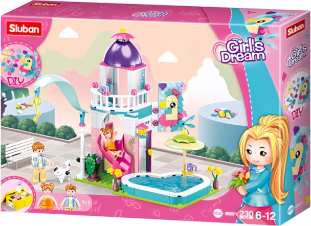 Sluban domek se skluzavkou do bazénu je zábavná a kreativní stavebnice, kterou lze snadno kombinovat s jinými stavebnicemi. Skvěle rozvíjí dětskou fantazii a motorické dovednosti.