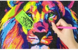 5D diamantová mozaika s motivem duhového lva je ideální volbou pro chvíle odpočinku i rozvoj jemné motoriky. Proces je nenáročný na dovednosti – podle barevného kódu jednoduše aplikujete kamínky na samolepicí plátno a sledujete, jak se obraz proměňuje v třpytivou mozaiku.