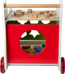 Šest dílků vkládačky, postranní bludiště a otáčivé kostky pomáhají dětem poznávat tvary a barvy, trénovat koordinaci oko–ruka a logické myšlení.