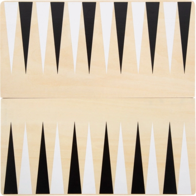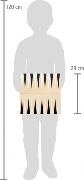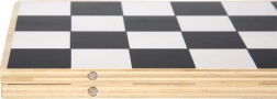 Hrací plocha pro šachy/dámu i vrhcáby na jediné desce. Dvě poloviny se spojují magnety – snadno se přenáší i skladuje.