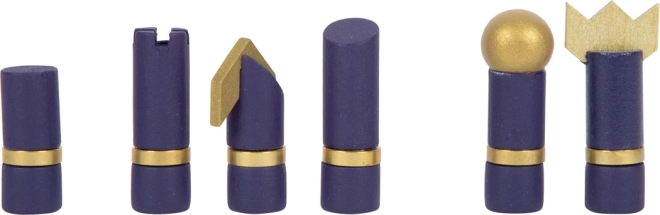 Kombinace půlnoční modré, přírodního dřeva a zlatých akcentů povyšuje klasické hry na moderní doplněk interiéru.