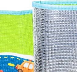 Barevná pěnová hrací podložka s motivem města o rozměru 200 × 160 cm vytvoří pro děti bezpečné a kreativní místo na hraní. Díky vrstvě termoizolační fólie skvěle izoluje od chladu, tlumí nárazy a je ideální do dětského pokoje i na cesty ven. Má snadno omyvatelný povrch, je odolná proti znečištění a přenášení usnadní praktická taška se zipem.