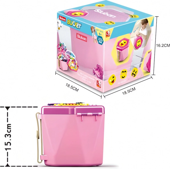 Stavebnice Sluban v růžovém kbelíku přináší hodiny zábavy a rozvoje fantazie. Přenosné balení s víkem – stavební podložkou – umožní stavět kdykoli a kdekoli. Díky nízké obtížnosti je ideální pro děti od 4 let a díky kompatibilitě s LEGO, COBI a MEGA BLOKS snadno rozšíříte svou sbírku.