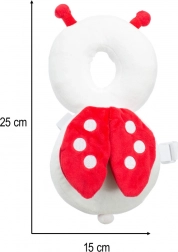 Měkký ochranný batůžek ve tvaru berušky chrání dětskou hlavičku při prvních pokusech o stání, lezení a chůzi. Elastické nastavitelné popruhy drží polštářek pevně na zádech, zatímco kruhový límec kolem hlavy tlumí pády na týl. Lehký, hebký a příjemný na dotek pro každodenní používání.