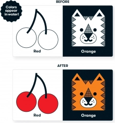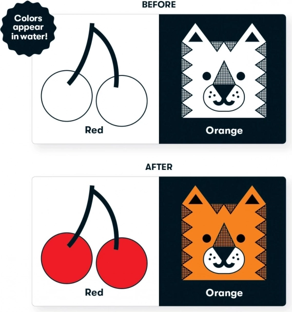 Kouzelné čtení do vany od značky Mudpuppy promění každé koupání v radostný objev. Stačí knížku ponořit do vody a černobílé ilustrace se promění v jasně barevné obrázky. Děti se tak hravou formou učí barvy a vnímají změny, které voda přináší.