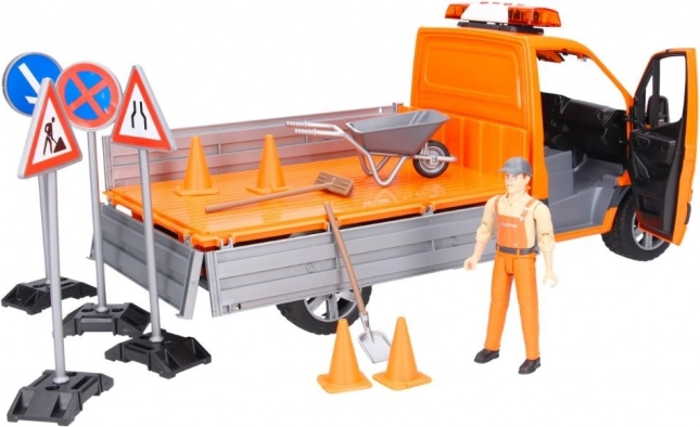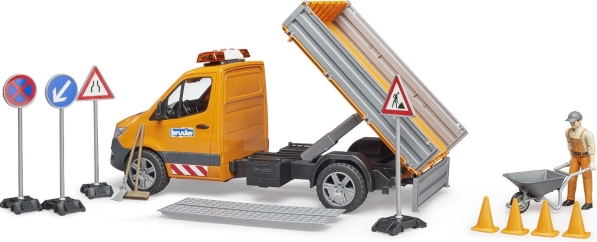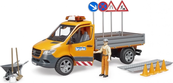 Detailně zpracovaný model Mercedes‑Benz Sprinter od BRUDER pro údržbu silnic přináší světelné a zvukové efekty, vyklápěcí korbu se sklopnými bočnicemi a bohaté příslušenství pro realistickou hru. Součástí je figurka silničáře, nájezdové ližiny, značky i kužely. Kvalitní ABS plast, měřítko 1:16, vyrobeno v Německu.