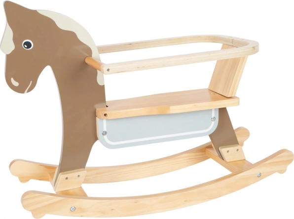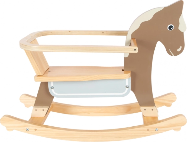 Vzhůru do sedla! Tento dřevěný houpací koník od značky small foot pomáhá dětem rozvíjet rovnováhu, koordinaci pohybů a stabilitu. Pro bezpečnou jízdu je vybaven odnímatelným hrazením a opěradlem, má dorazy proti překlopení a robustní dřevěnou konstrukci s nosností až 50 kg.