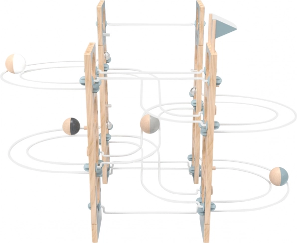 Materiály hračky obsahují odolnou překližku a kuličky z masivního dřeva, které svým skandinávským a přírodním vzhledem stylově doplní jakýkoliv dětský pokoj. Tato dráha je ideálním nástrojem pro rozvoj dětské kreativity a jemné motoriky.