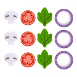 Sada obsahuje 12 plstěných napodobenin přísad jako houby, rajčata a cibule, které dětem poskytují možnost přípravy různorodých pokrmů.