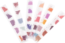 V setu je vše, co potřebujete k vytvoření zářivého uměleckého díla: obrázek, barevné kamínky, aplikátor, suché lepidlo a tácek.