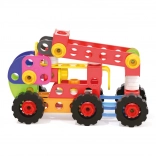 Šroubky, matice a děrované destičky se snadno spojují a drží. Děti si postaví auta, traktory, jeřáby i vlastní modely – jednoduše a bezpečně.