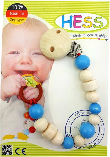 Elegantní a funkční doplněk pro každý kočárek i domácnost. Klips na dudlík HESS kombinuje bezpečné uchycení, odolné materiály a ekologické zpracování. Díky univerzálnímu silikonovému kroužku pasuje na většinu dudlíků a spolehlivý kovový klips se snadno připne na oblečení.