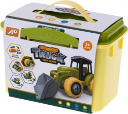 Všechny části jsou bezpečně uloženy v praktickém plastovém boxu, který usnadňuje přenášení a uskladnění celé sady. Ideální jako dárek pro každého malého fanouška traktorů a hospodářských zvířat.