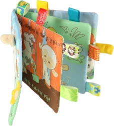 Kniha se skládá ze čtyř látkových listů, které obsahují krátký příběh v angličtině, což pomáhá seznámit děti s cizím jazykem již od raného věku.