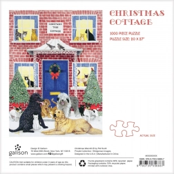 Objevte kouzlo Vánoc se scénou plnou psů, koček a sváteční výzdoby před útulnou chaloupkou. Puzzle s 1000 dílky nabízí radost z pečlivého skládání a po dokončení vytvoří krásný obraz, který potěší oko i srdce.