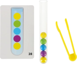 Objevte zábavný a interaktivní způsob, jak podpořit dovednosti vašeho dítěte díky tomuto velkému vzdělávacímu setu. Hra se zaměřuje na třídění kuliček do správných zkumavek pomocí rukou nebo přiložených kleštiček.
