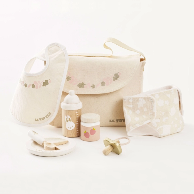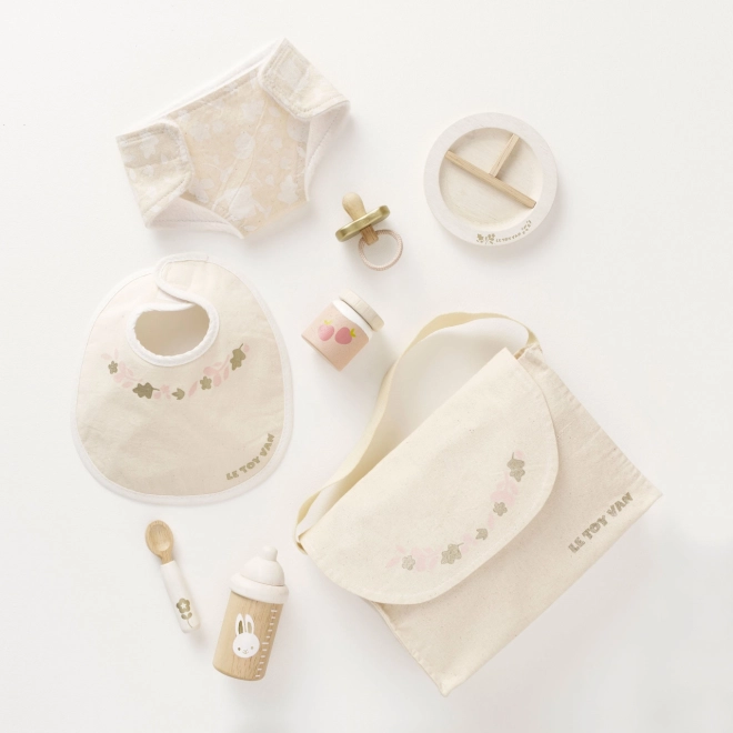Péče o panenky a plyšáky nikdy nebyla tak zábavná a inspirativní. Le Toy Van pečovatelská sada nabízí kompletní výbavu pro malé pečovatele. Obsahuje textilní přebalovací tašku s dekorativním vzorem, dudlík, bryndák, plenku, talíř, lžíci, přesnídávku a lahvičku. Každý kus je vyroben s ohledem na udržitelnost a kvalitu, aby vydržel mnoho hodin her.