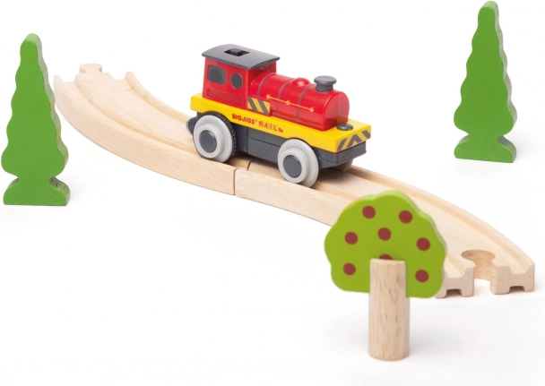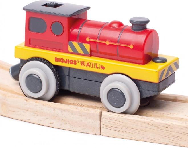 Rozjeďte svou dřevěnou vláčkodráhu s elektrickou lokomotivou od Bigjigs Rail. Díky bateriovému pohonu sviští po kolejích, snadno táhne vagónky přes magnetická spřáhla a díky gumovým návlekům na kolech má plynulý záběr bez prokluzu. Pevné a odolné provedení v atraktivní červené barvě a kompatibilita s většinou vláčkodrah zaručí hodiny kreativní hry.