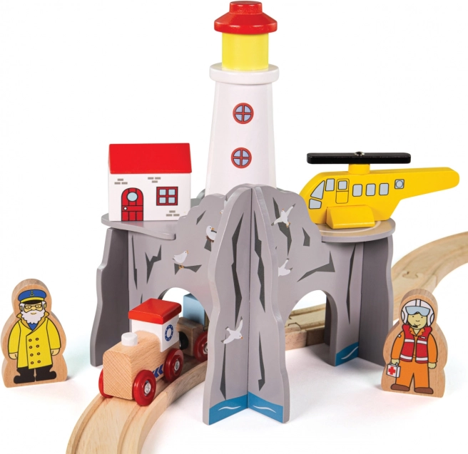 Obohaťte dětskou vláčkodráhu o pobřežní scenérii s majákem a heliportem. Tato dřevěná sada nabízí čtyřcestný tunel, maják, helikoptéru a 2 figurky pro nekonečné příběhy a záchranné mise. Vyniká robustním zpracováním, je kompatibilní s většinou dřevěných vláčkodrah a je vyrobena z odpovědně získaného dřeva s nezávadnými barvami.