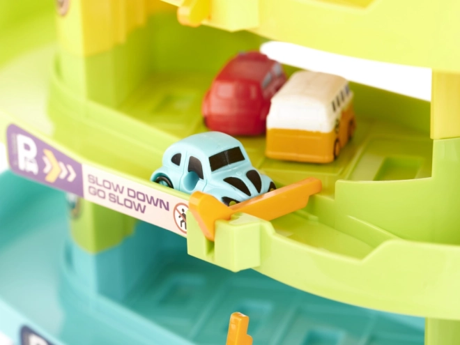 Víceúrovňová garáž, výtah, cesty, výjezdy, ozdoby a nálepky – vše v atraktivní krabici, skvělé jako dárek pro děti od 3 let.