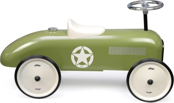 Odrážedlo Vilac Vintage v khaki barvě vás vtáhne do elegantní éry 30. let. Jeho odolná kovová karoserie s aerodynamickými tvary a detaily čelní masky dodávají výrobku unikátní vzhled. Polohu pevného, ale pohodlného plastového sedadla lze nastavit pro maximální komfort dítěte.