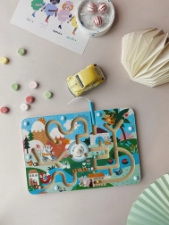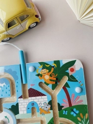 Magnetické bludiště od Vilac zavede děti do světa jemných ilustrací Michelle Carlslund. Pomocí magnetického pera mohou děti pomáhat zvířátkům dostat jejich kuličky na místo. Tato hračka je zábavná a bezpečná díky magnetickému principu.