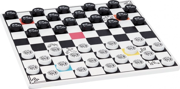 Tato elegantní dřevěná souprava přináší nadčasovou zábavu v moderním uměleckém kabátě. Originální kresby KEITH HARING dodávají hrám osobitý styl a z nich činí nejen skvělou volnočasovou aktivitu, ale také nepřehlédnutelný dekorativní prvek do dětského pokoje, herny či klubovny.
