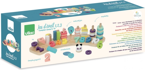 Tato dřevěná vzdělávací hračka VILAC pomáhá dětem ve věku od 2 let přirozeně pochopit čísla, tvary a základní matematické vztahy. Díky atraktivním barvám a různorodým vzorům rozvíjí soustředění, koordinaci oko–ruka i hmatové vnímání. Kvalitní dřevo a odolné provedení zaručí dlouhou životnost a bezpečné hraní.