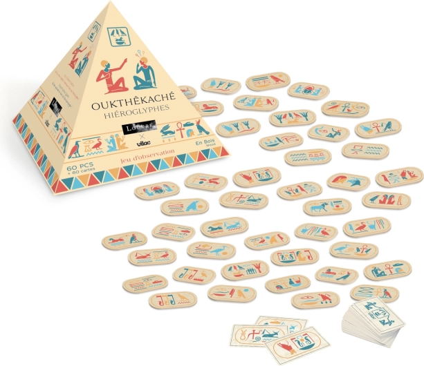 Ponořte se do hry, která vás zavede do tajemného světa starověkého Egypta. Každý hrací dílek je pevný a odolný, vyrobený z kvalitního dřeva, což zaručuje dlouhou životnost. V atraktivní krabici ve tvaru pyramidy najdete: