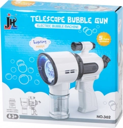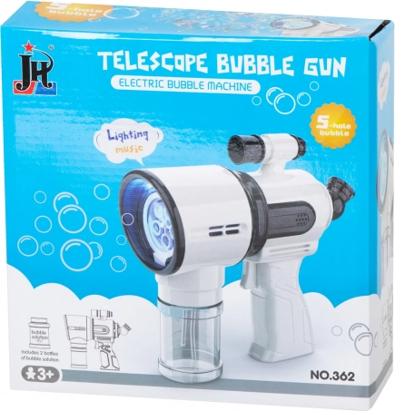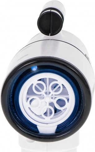 Tato bílá pistole na bubliny je ideální pro děti od 3 let i rodinné venkovní akce. Integrovaný větráček a systém s 5 kroužky zajišťují plynulé foukání a proud desítek až stovek bublinek na jedno stisknutí spouště. Pro větší zábavu nechybí LED podsvícení a zvuky, které lze jedním tlačítkem zapnout nebo vypnout.