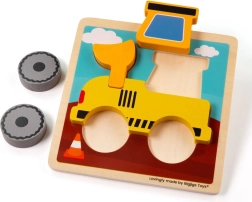 Vkládací puzzle pro nejmenší s motivem bagru, vyrobené z vysoce kvalitních, zodpovědně získaných materiálů. Skvělý nástroj pro rozvoj jemné motoriky, logického myšlení a poznávání tvarů a barev.