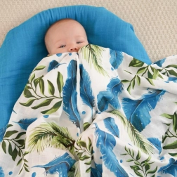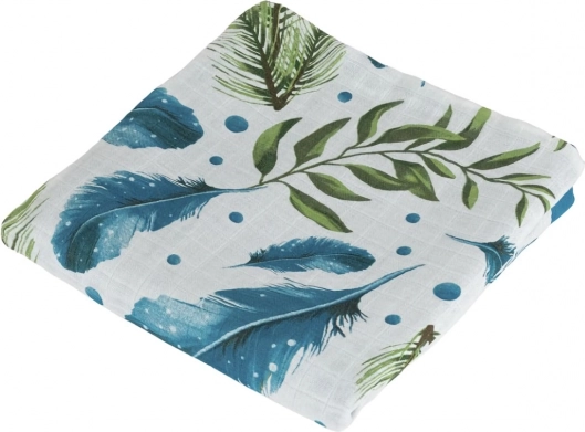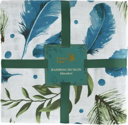 Oblečte své miminko do pohodlí a jemnosti. Tato bambusová mušelínová deka je navržena pro maximální komfort s krásným motivem peříček a listů. Vyrobena z 70% bambusu a 30% bavlny, je ideální pro horké dny díky své prodyšnosti a chladivému pocitu.