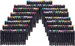 Tato rozsáhlá sada dvouhrotých alkoholových markerů nabízí vše, co potřebujete pro kreativní tvorbu i každodenní zvýrazňování informací. Díky kombinaci jemného hrotu pro přesné linie a širšího šikmého hrotu pro plnění ploch snadno zvládnete kontury, kaligrafii, stínování i hladké přechody.