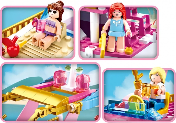 Tato barevná stavebnice luxusní jachty potěší všechny malé stavitele a stavitelky. Díky promyšleným detailům jako rybářský prut, surf nebo posezení na palubě je ideální pro imaginativní hry u moře. Figurky mají otáčivé a výkyvné části, což podporuje dynamické scény a zábavné příběhy.